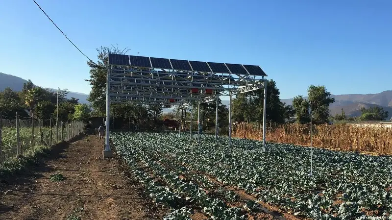 Shade against drought - This small solar roof in a field near Santiago in Chile is one of the first agri-PV systems in Latin America. Researchers are using broccoli and cauliflower to test how the system works best. The region is very sunny, and has been suffering from declining rainfall and increasing drought. Initial experience with solar shade in this field has been positive.