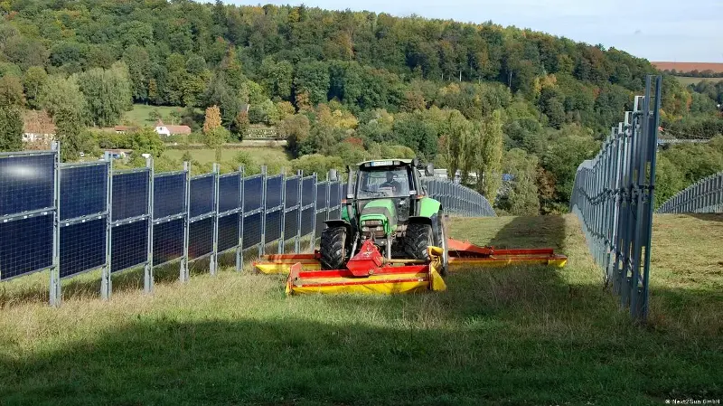 An alternative perspective - Placing solar panels vertically in a field allows them to receive light from both sides. In Germany, such structures can produce as much electricity per module as roof systems. At the same time, these "solar fences" provide wind protection and leave plenty of space for harvesting equipment.