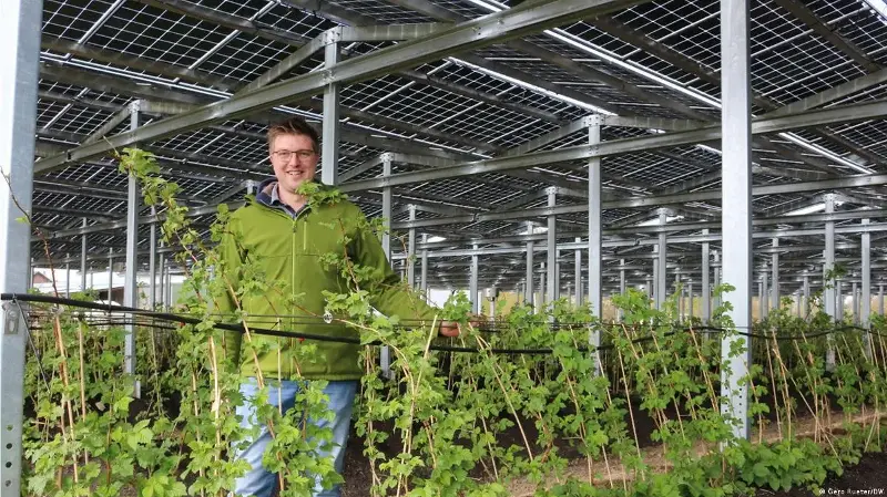 Harvesting electricity — and berries - Fabian Karthaus is one of the first farmers in Germany to grow raspberries and blueberries under photovoltaic panels. His solar field near the city of Paderborn in northwestern Germany is 0.4 hectares (about 1 acre), but he would like to expand it to 10. He could then generate enough electricity for around 4,000 households — and provide more berries for supermarkets.