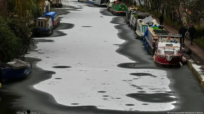 The UK Meteorological Office said winter hazards would continue throughout the week for most of the country. Canals in the capital London were frozen over.