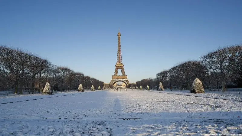 The French capital remained caked in a layer of snow after a fairly heavy snowfall on Monday evening, including for the Ukraine Coalition of the Willing summit hosted by President Emmanuel Macron.