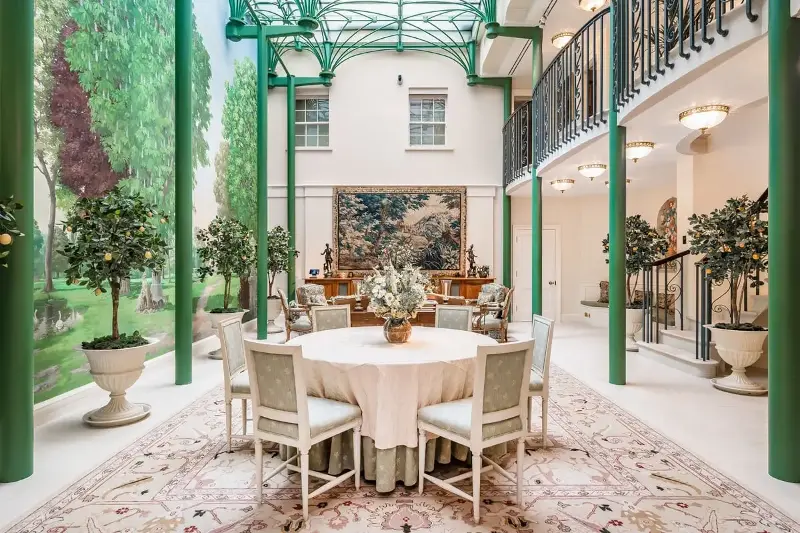 It does not factor in the two drawing rooms, the dramatic double-height glass-roofed atrium, formal and informal dining rooms, the sculpture gallery, panelled library, the wine cellar or the gym – not to mention the passenger lift.