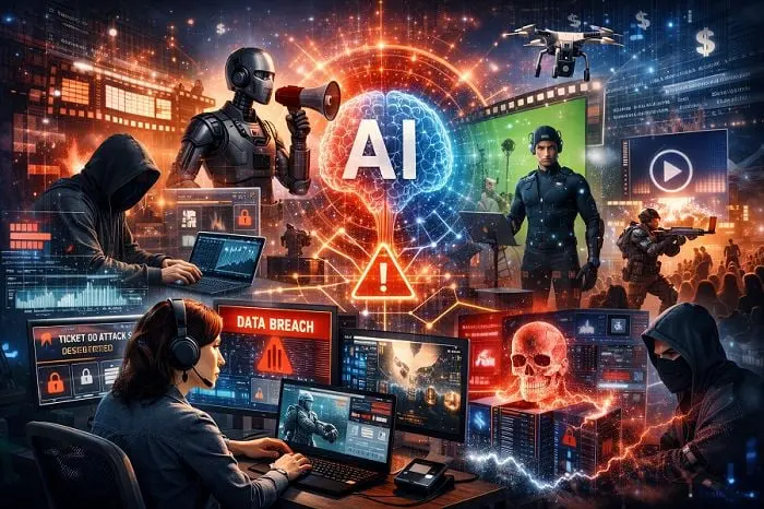 Artificial intelligence is changing how people buy tickets, watch movies, and play games — and it is also changing how malicious actors target those experiences. The entertainment industry is particularly sensitive to AI because the technology not only automates back-office workflows; it increasingly creates and imitates the core product itself — human-centered stories, performances, and visual experiences.