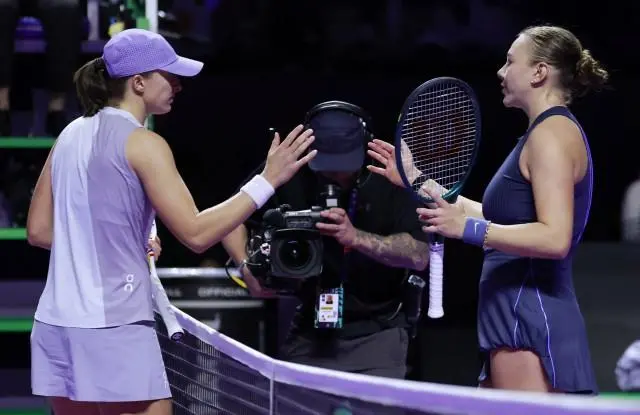 Amanda Anisimova rallied for a 6-7 (3), 6-4, 6-2 victory over Iga Swiatek of Poland on Wednesday to reach the semifinals of the WTA Finals in Riyadh, Saudi Arabia.