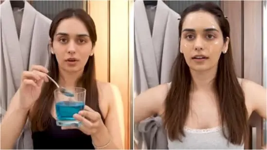 “First things first, I start with washing my face. Now, I only rinse my face with water. I don’t really use a cleanser in the morning because I feel it’s a little too harsh for my skin. My skin is mostly dry,” Manushi explained. She shared that she believes in letting the natural oils produced overnight give her skin a healthy glow. “Remember to pat your face dry, don’t rub. I used to rub my face, and my mom was like, ‘What are you doing to your skin?’”