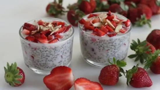 Strawberry chia overnight oats offer a refreshing suhoor option during Ramadan. Oats provide fibre that helps release energy gradually during fasting hours. Strawberries add vitamin C and hydration, while chia seeds supply fibre and plant nutrients that support fullness and balanced nutrition.