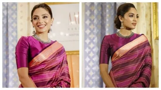 The actor wore a deep magenta silk saree for the event, exuding a high-end heritage feel. In the comment section, Sobhita wrote, “Wearing - Tanchoi silk weave, origin Varanasi.” Tanchoi silk is a silk weave from Varanasi, known for the fine work, texture and patterns. Upon closer look, the actor's saree contains several horizontal stripes which evoke a sense of understated opulence.