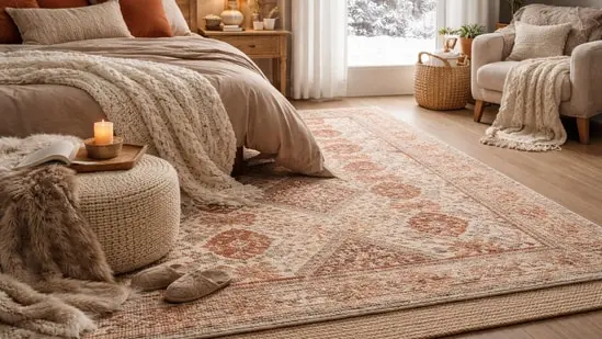 Rugs work as natural insulators, and the reason is simple. The fibres trap pockets of air, which slows heat loss through cold floors. This gently raises the surface temperature, so the floor feels warmer the moment your feet touch it. It is not only about softness. It is about stopping warmth from slipping away. This also means you do not need to blast your room heater. Keep it on a lower setting, let the rug hold on to that heat, and the room still feels snug without the dry, overpowering warmth.