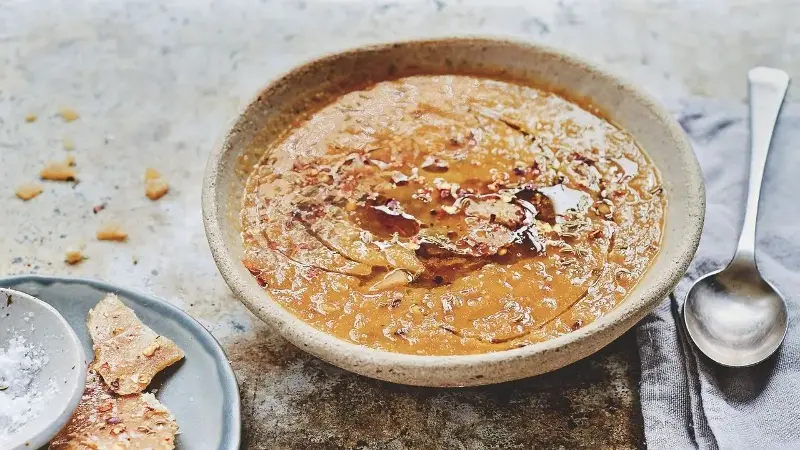 - Smash the brittle and serve the soup with pieces of brittle on top.