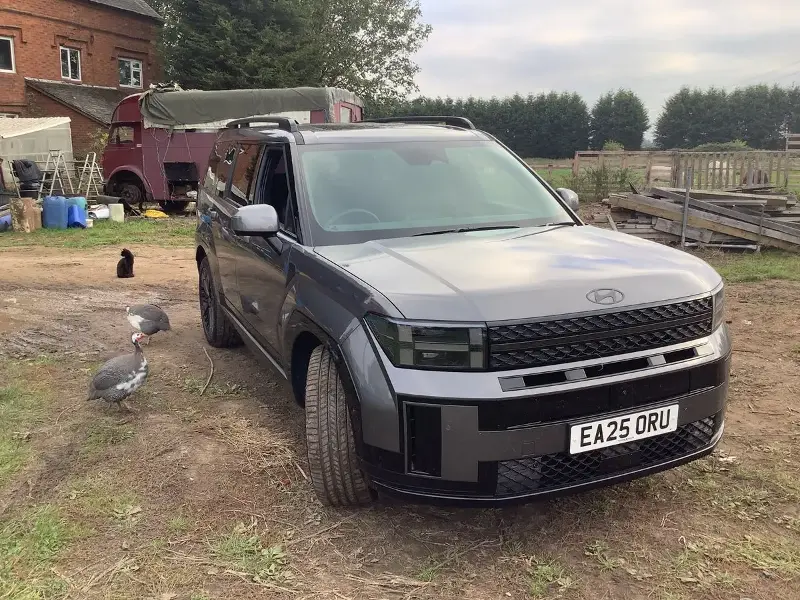 As you can see from the images, the new Hyundai Santa Fe is very much at home down on the farm, even if it can draw quizzical glances from the Guinea fowl, inquisitive creatures as they are. Very much like myself, as it happens, and after four generations of fairly pleasant but forgettable versions of Hyundai’s flagship SUV, they decided to give the latest version a full modernisation, drawing strongly on the themes used on their latest electric vehicles, notably the big Ioniq 9 SUV, This Santa Fe is a much more distinctive and successful exercise in styling.