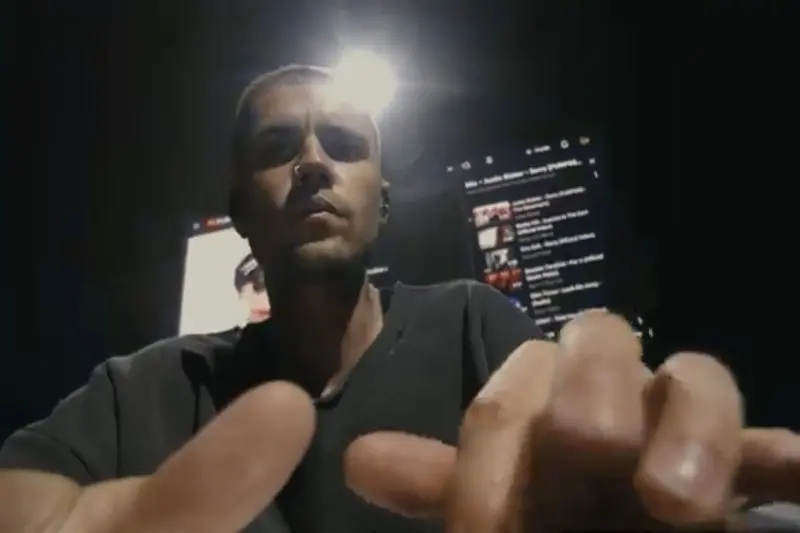 Using the laptop as a kind of digital scrapbook, Bieber pulled up old clips of himself singing covers, as well as the “standing on business” paparazzi confrontation that went viral last June.