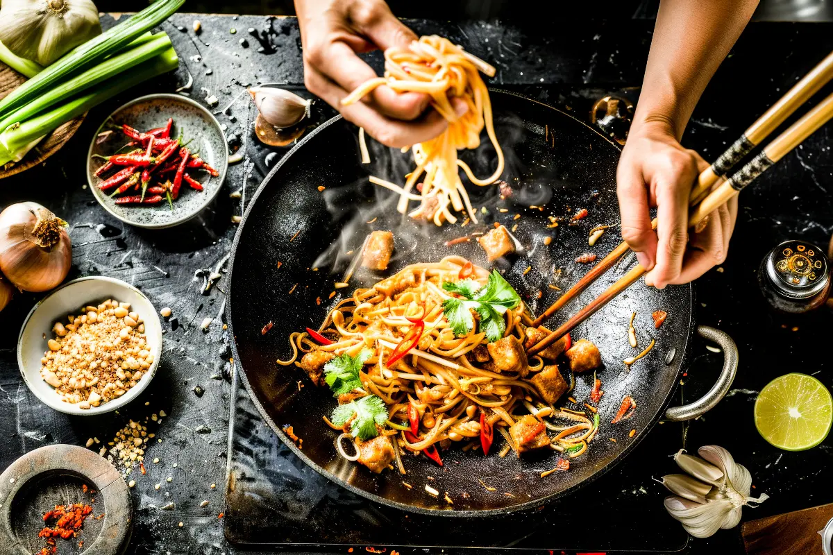When cooking Pad Thai, the order in which you introduce the ingredients is important to prevent any element from being overcooked or lost amongst the others. Your pre-soaked and drained noodles are added to the pan after the protein and vegetables, swiftly followed by the sauce, allowing everything to fuse together. Constant stirring and tossing are par for the course, maintaining an even cooking temperature and preventing any sticking or burning.