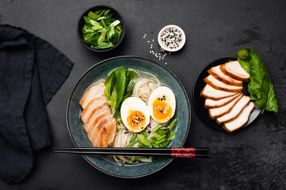 Topping time is where the magic happens. Layer your preferred ingredients onto the noodles, arranging them neatly for visual impact—after all, we eat with our eyes first. Start with your protein, such as slices of chashu, then add your vegetables. Finish off with a perfectly halved ajitama perched atop the heavenly mix.