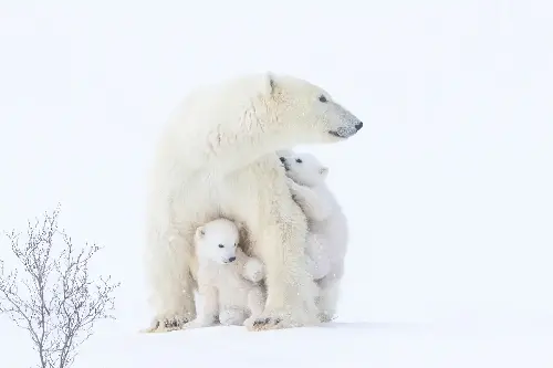 Reproduction and cub raising are perhaps the most endearing aspects of polar bear life. Females give birth in the middle of winter in a den made of snow, usually to twins. The cubs are born blind and tiny, weighing little more than a kilogram. They rely completely on their mother's milk, which is exceptionally rich in fat, and they quickly grow in the safety and warmth of the den. Come spring, the mother introduces the cubs to the outside world, teaching them to hunt and survive in one of the most challenging environments on Earth.