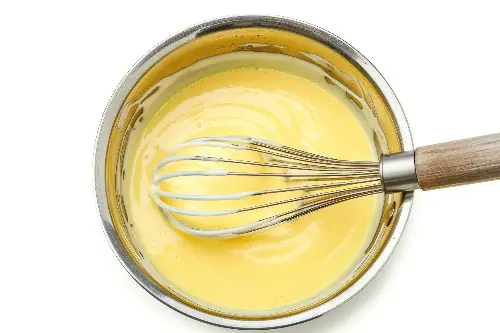 To achieve the right consistency for your pâte à bombe, you'll need a candy thermometer. When making the syrup, it's crucial to bring it to the 'soft ball' stage, at exactly 238 degrees Fahrenheit (114 degrees Celsius). This precision ensures that the egg yolks are safely cooked and the parfait reaches the silky smoothness that is characteristic of the dessert.