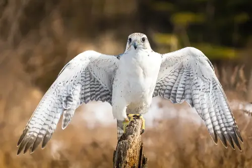 The gyrfalcon, the largest of the falcon species, stands out against the snow-white canvas of its Arctic habitat. It may not dive as fast as a peregrine, but the gyrfalcon is a potent contender in the skies, reaching hunting speeds of up to 130 miles per hour (209 kilometers per hour). Camouflaged against the tundra, the gyrfalcon is a formidable hunter, preying on birds and mammals adapted to the cold climes of the high north.