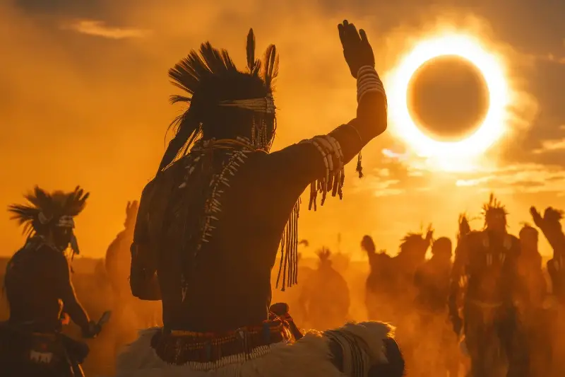 Among the Ojibwe and other Native American peoples, eclipses were often described as a powerful meeting between the sun and the moon—not a battle, but a rare moment of union. In some tribes, people sang or danced to encourage the two lovers to part and resume their roles in the sky, keeping the world in balance.