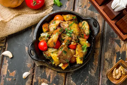 If you're seeking a hearty meal, then ojakhuri should be on your radar. Translating to "family meal," this rustic dish is as much about the flavour as it is about the sentiment behind it. Tender chunks of pork or beef are intermingled with potatoes, onions, garlic, pepper, and a medley of spices, all cooked together until caramelised and flavoursome. It is often served sizzling hot on a clay dish, making it a feast for both the stomach and the senses.