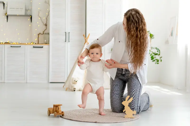It’s easy to feel compelled to direct every step or to get anxious if your baby isn’t matching another child’s walking timeline. In reality, the best approach is gentle encouragement over intervention. Hold your baby’s hands and let them pull up to a standing position, or use sturdy furniture for support rather than walking aids that promise “quicker” progress. Walkers and jumpers, while tempting, actually slow down physical development by providing artificial support, which delays important muscle strengthening.