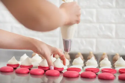 Selecting the macaron filling is where you can get creative. Traditional fillings include ganache, buttercream, or fruit curds, but the possibilities are endless. When assembling, match pairs of similar-sized shells and pipe a small amount of filling onto one shell before gently pressing the other on top, just until the filling reaches the edges.