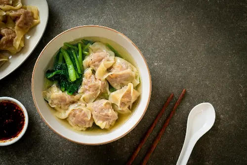 A supreme wonton soup demands a broth that is equally as refined. The foundation is a good-quality chicken or pork stock—slow-simmered bones and aromatics such as ginger, garlic, and spring onions are the classics, creating a base that is both rich and clear. Seasoning the broth is vital; a properly seasoned broth draws out the wontons’ flavour without overwhelming them, usually with a fine balance of salt and white pepper and sometimes a drop of sesame oil for aromatic depth.