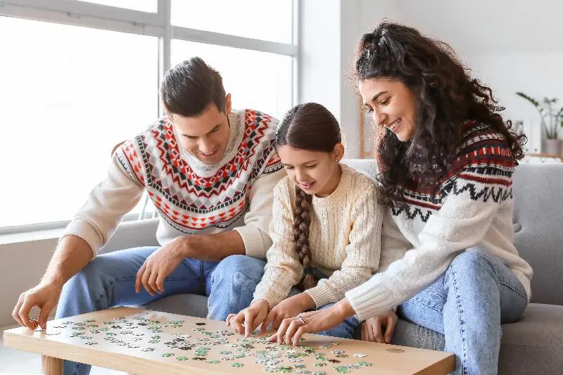 19. Do a family puzzle, either physical or digital, with a festive image. It can stretch over several days and become a collaborative tradition.