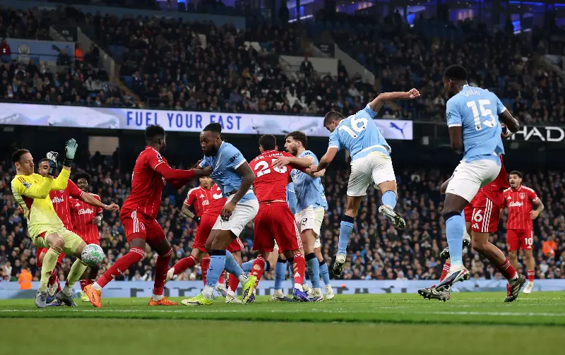 From the opening whistle, the tactical blueprint was clear: Manchester City flooded the attacking third, pinning Nottingham Forest deep within their own territory. The pressure was nearly rewarded as early as the seventh minute when Antoine Semenyo found space inside the penalty area. His stinging effort beat the keeper but agonizingly grazed the outside of the post, serving as an early warning sign for the visitors.