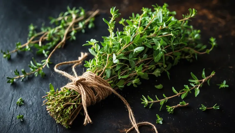 Fresh thyme is easy to use: simply snip a few sprigs, rinse them, and strip the leaves from the woody stems. The leaves can be added directly to dishes or dried for later use. For a simple home remedy, steep fresh thyme in hot water with honey and lemon for a soothing herbal tea.