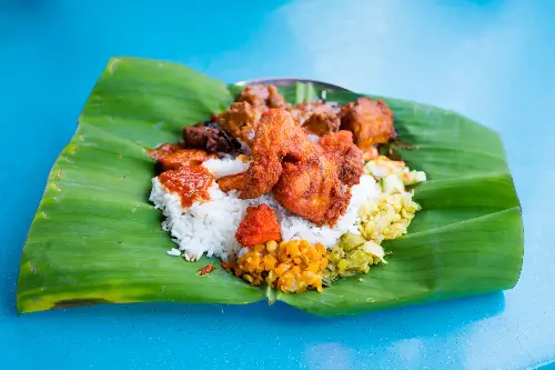 Take a culinary detour to the Malaysian Indian specialty of Banana leaf rice. Here, fragrant rice is served on a banana leaf, with an assortment of vegetable dishes, pickles, papadums, and a choice of meat curries. It's a visual and sensory delight, and following traditional etiquette, folding the leaf towards you at the end of the meal signals satisfaction.