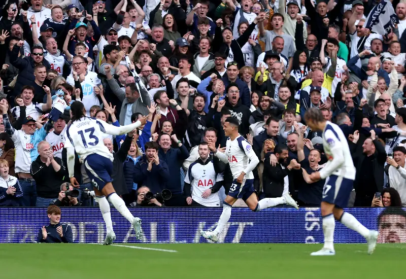 The breakthrough for the home side finally arrived in the 39th minute. Following a sustained period of pressure, Xavi Simons delivered a pinpoint cross into the heart of the penalty area. Timing his run to perfection, Pedro Porro rose above the Brighton defenders to power a commanding header into the back of the net. The stadium erupted as the goal provided a glimmer of hope for a side desperately needing three points to escape the drop zone.
