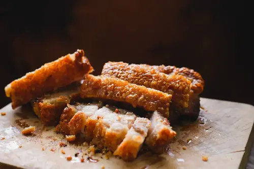 Pork is often somewhere in the middle between chicken and beef. Pork tenderloin is a particularly lean choice, with about 120 calories per 100 grams, which is even lower than some lamb and beef options. Move to pork belly or ribs, however, and the calorie count surges, with the belly offering upward of 500 calories per 100-gram portion—most of it fat.