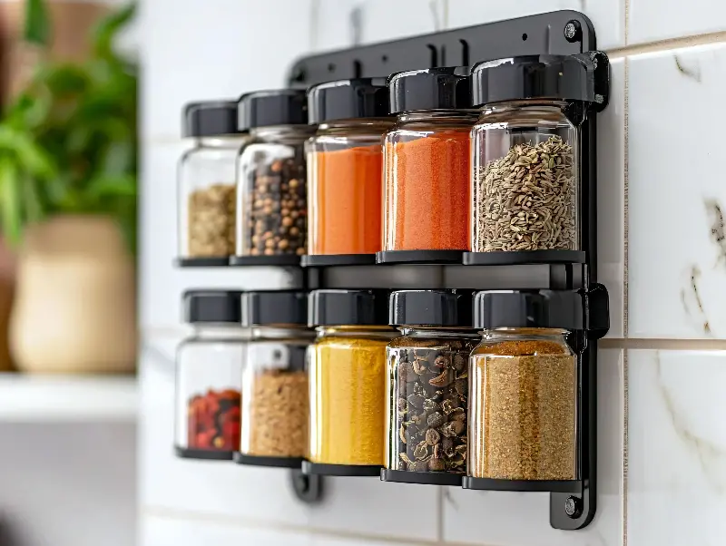 - Magnetic wall-mounted racks to keep knives within reach but off the counter.