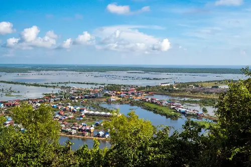 The surrounding area reveals the charms of rural Cambodia, where life unfolds with the seasons, and the Sangker River flows quietly by. Phnom Sampeau, with its mountaintop pagoda, offers breathtaking views and a poignant history, further endearing this genteel region to the hearts of visitors.