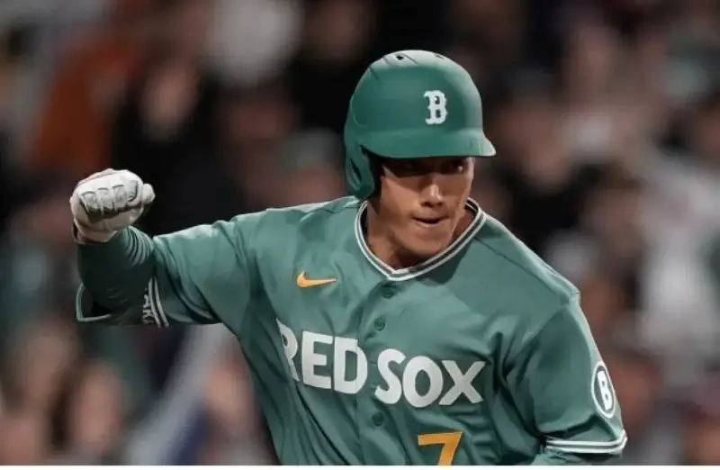 The Red Sox, sporting their "Fenway Greens" uniforms for the first time this season, improved to 7-5 - all walk-off wins - in the green jerseys that debuted in 2025.