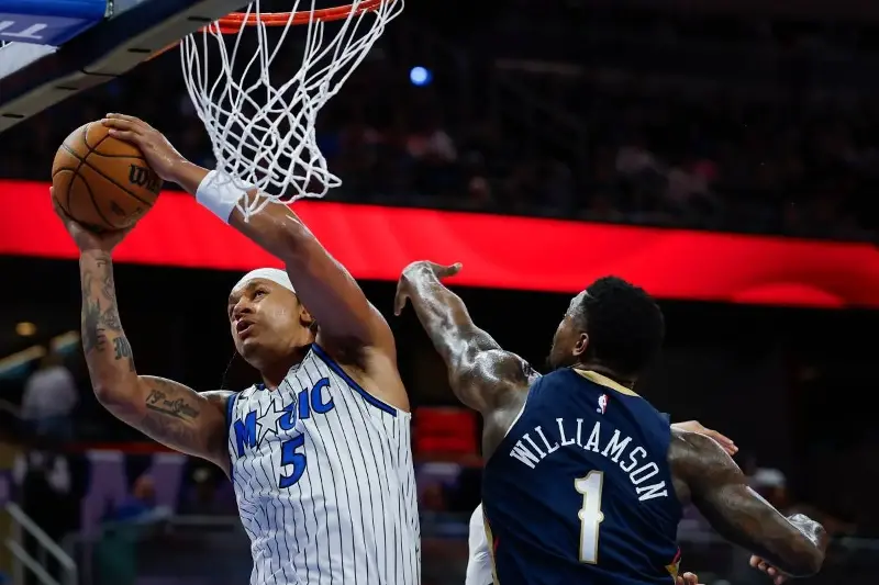 ORLANDO, Florida — Paolo Banchero had 23 points, eight rebounds and eight assists, Desmond Bane added 27 points and Orlando beat the New Orleans Pelicans 128-118 on Sunday in Magic center Moritz Wagner's return from a serious knee injury.