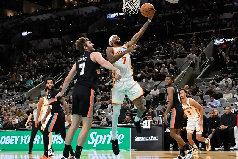 San Antonio was without Wembanyama (left calf strain), Stephon Castle (strained left hip flexor) and Dylan Harper (strained left calf). Trae Young (right MCL sprain) sat out for Atlanta.