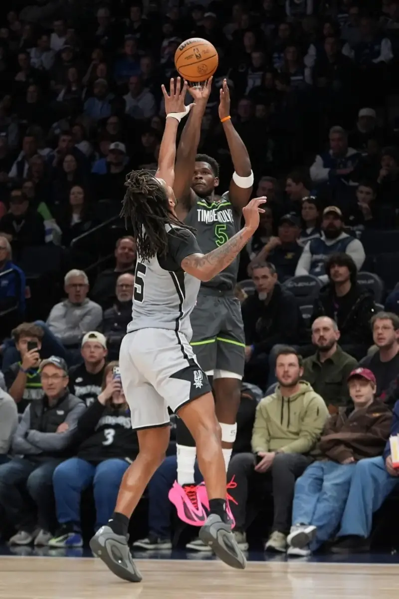 Edwards gave the Wolves their first lead at 100-98 on a turnaround jumper with 2:19 remaining, before Harrison Barnes put the Spurs back in front with a 3-pointer.