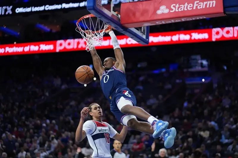 Jared McCain added 14 points for Philadelphia and fellow reserve Jabari Walker had 10 points and 12 rebounds. Paul George scored 11.