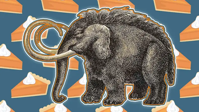 People certainly weren’t thinking of mammoths when they first began adding pumpkin pie to their Thanksgiving menus. And though pumpkins may have been part of the first Thanksgiving, pumpkin pie was nowhere to be found.
