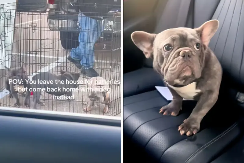 Jarnell Garland, known on TikTok as @bakingitpretty, shared in a Monday video that reached over 8 million views and 1.2 million likes that she left home to buy batteries. Instead, she brought home a French bulldog. As she drove through the parking lot, she spotted a man with the car truck open. He set up a doggy gate filled with Frenchies, along with a sign that read “Free” and “Free to a loving home.”