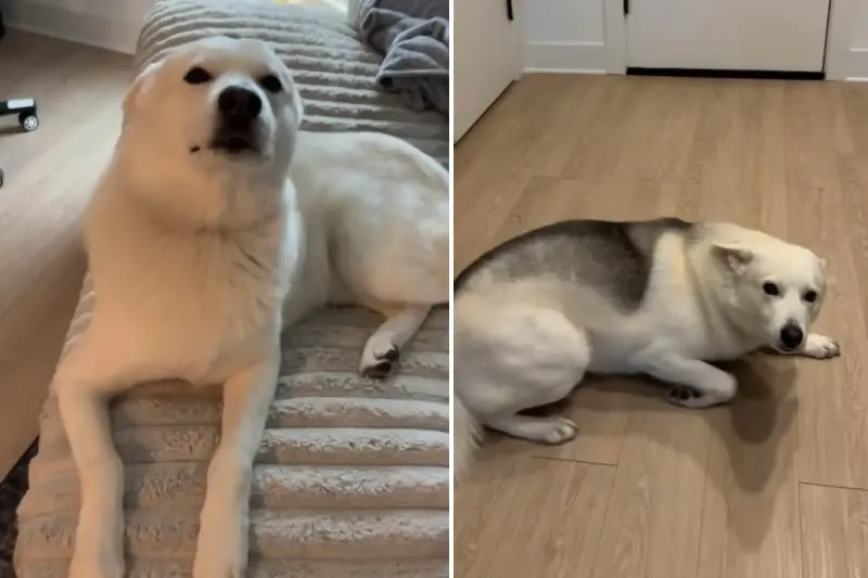 In the December 9 video shared to @bolt.the.shepsky, Bolt can be seen standing on his hind legs, sheepishly lying on the floor, and then on the couch—next to something that shouldn’t be there.