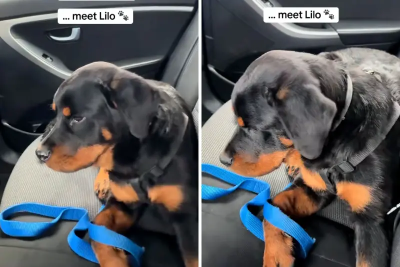 In this week’s TikTok video posted to the account @rottienamed_stitc, the owner picked up the second dog, Lilo, and drove him back to live with his brother and them forever. But for Lilo, his life turned upside down. He sat in the car with his head down, stressed and confused, unaware he was about to be reunited with his brother.
