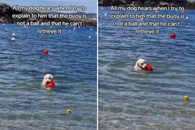 The clip showed Bailey proudly gripping a bright red buoy far out in the water—despite his owner’s attempt to persuade him to return to shore.