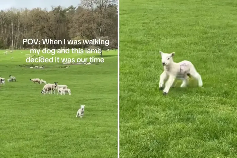 The caption alongside the video notes that her dog “was on a lead” and unbothered by the lamb’s appearance. After approaching Barrett-Grant, the lamb swiftly turned back around and returned to the flock.