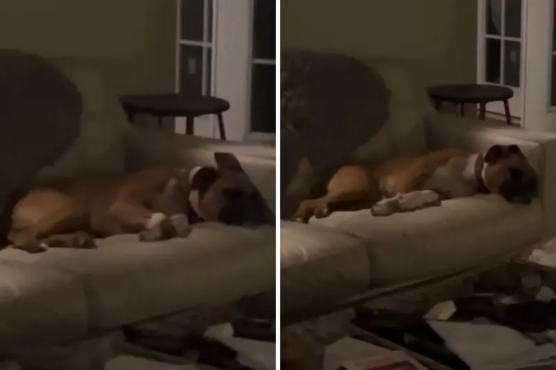 The moment a woman walked into her living room to find a dog that doesn’t belong to her lounging on her sofa has gone viral on Instagram, earning over 6.2 million views.