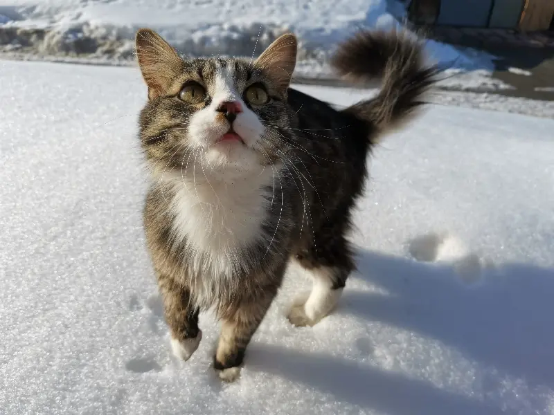 Cats that go outdoors need easy access back inside, especially during snow, frost or freezing rain. They should have a dry, insulated shelter and unfrozen water available.