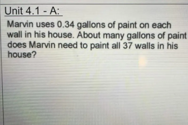 The question, given to a 10-year-old as homework, asked: “Marvin uses 0.34 gallons of paint on each wall of his house. About [how] many gallons of paint does Marvin need to paint 37 walls in his house?”