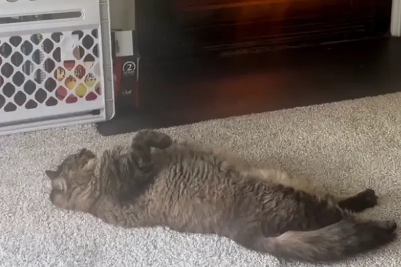 Lisa Darlington (@lisadarlington), 55, from Virginia Beach, Virginia, shared a video of her 2-year-old gray Maine Coon cat, Eddie, lying flat on his back in front of the fire. “This guy screamed at me all morning until I started a fire. I have created a monster lol, [laugh out loud]” she captioned the footage on Threads, where it garnered more than 25,500 likes and 471 reposts.