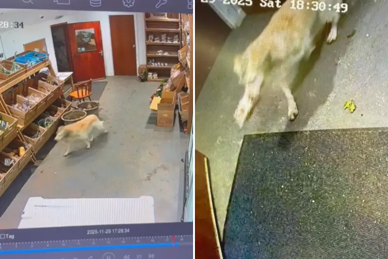 In the video, Amber the golden was seen padding into the quiet shop, heading straight toward the shelves and bakery area, before making off with a Madeira cake—and exiting with the confidence of someone who knows exactly what they came for.