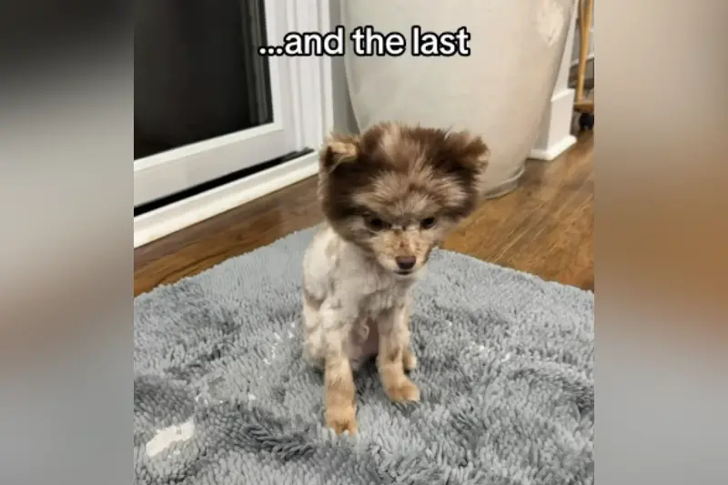 The video then switched to show Fritz after his haircut—and while his head and ears still kept the adorable fluff, the rest of his fur had been cut extremely short, almost appearing totally shorn at first glance, giving a bobblehead effect.